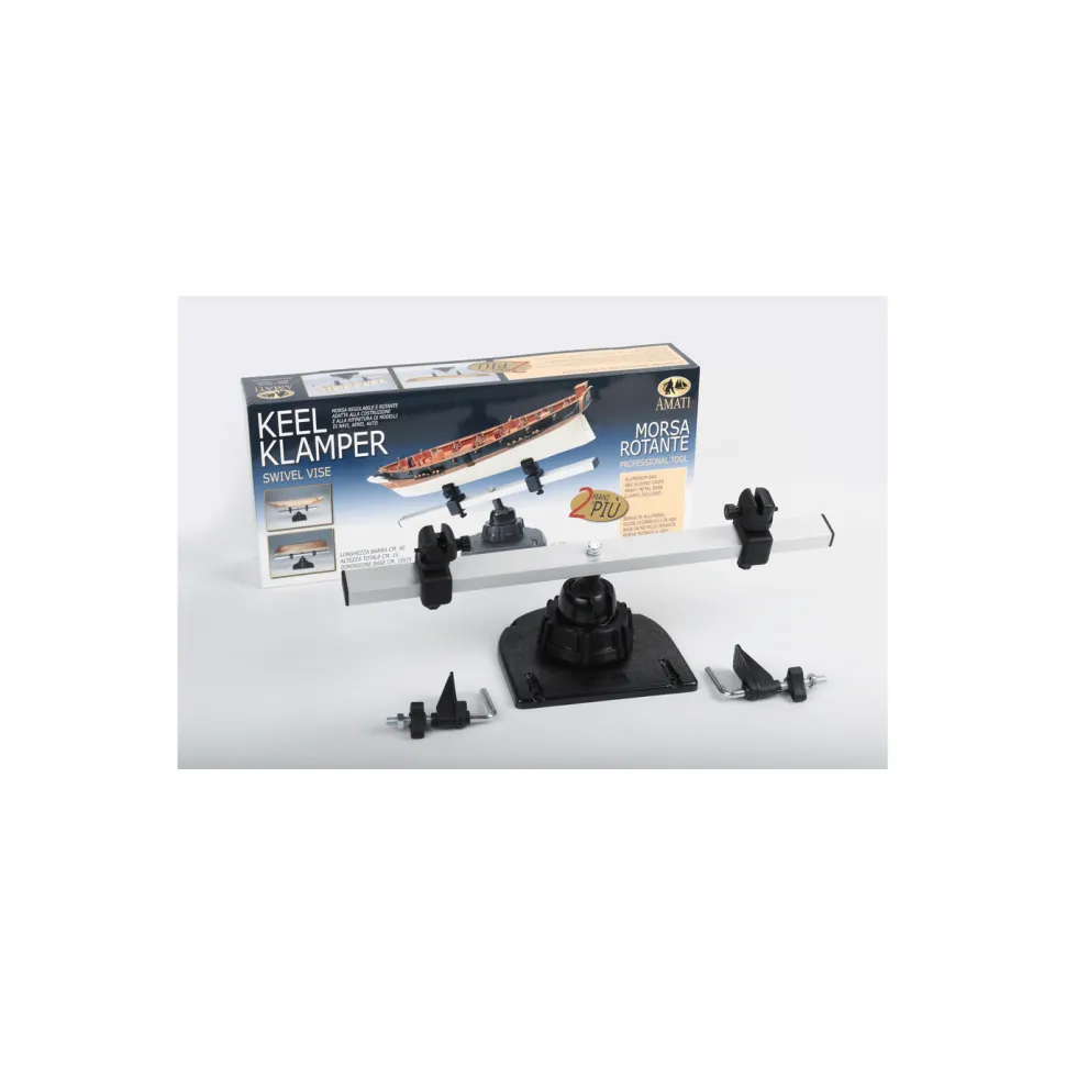Découvrez ce super accessoire pour maquette, très pratique de la marque Amati. Ce support rotatif spécial bloque et maintient les modèles pendant les phases de montage, peinture et finition. Les fixations mobiles coulissent sur la barre en aluminium et, en tournant, elles permettent de bloquer les modèles dans les positions les plus diverses.La barre, elle aussi pivotante et inclinable sur tous les côtés, permet d’accéder à toutes les parties du modèle. La base en métal peut être fixée à la table de travail à l’aide des deux fixations incluses dans la boîte, ou bien solidement bloquée à l’aide de quatre vis.La barre mesure 40 cm de longueur. Les fixations sont incluses.
