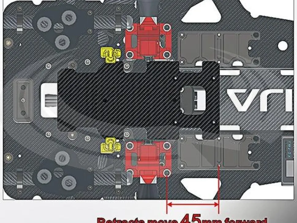 Enlarge the retract width to 71mm while the original width is 56mm only. It allow a bigger capacity battery to be used for M690L, such as 6S 22.2 16000mAh.