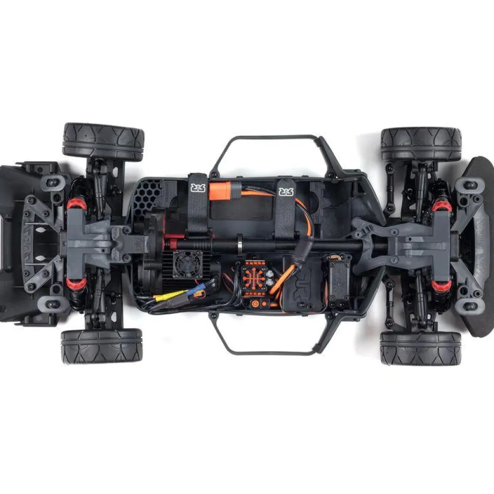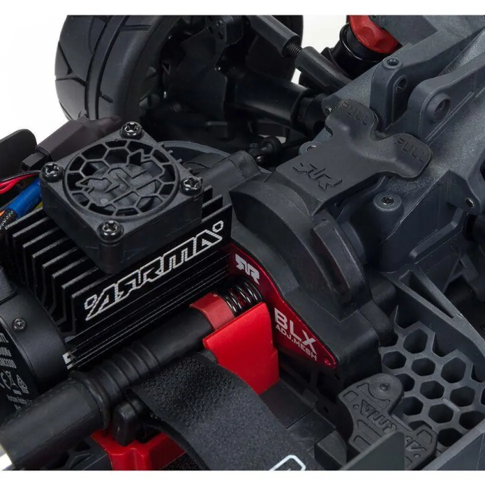 Grâce à ses 4 roues motrices, vous pouvez utiliser l’INFRACTION® 4X4 3S BLX sur route, mais aussi sur la terre, les graviers et l’herbe courte. La plateforme éprouvée est dotée d’un châssis composite robuste avec des déflecteurs de terre de grande hauteur, des amortisseurs remplis d’huile avec joints toriques en silicone, des différentiels à engrenage métallique, etc. La conception modulaire ARRMA® à accès facile simplifie l’entretien grâce à des modules de châssis séparés et faciles à retirer pour le système d’alimentation, l’électronique et les composants du différentiel.
