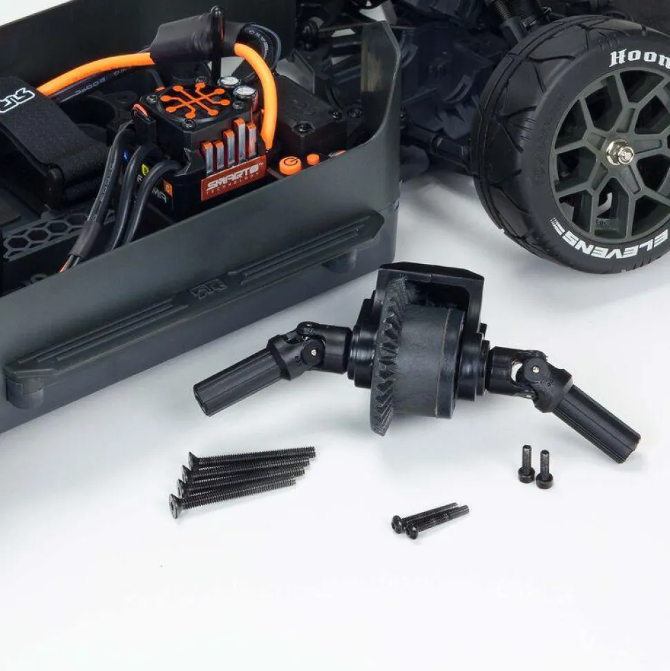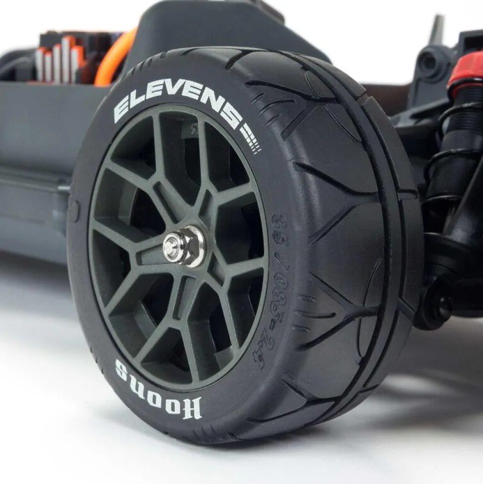 Pendant que vous maximisez le potentiel de vitesse du moteur sans balais Spektrum™ Firma™ installé, l’aile réglable à forte force descendante aide à maintenir les pneus tout-terrain ventilés dBoots® Hoons™ Elevens collés à la surface. Les pneus sont montés sur des roues robustes en nylon de couleur gunmetal et offrent une traction incroyable pour une accélération rapide ou pour s’arrêter sur un coup de tête. Un grand diffuseur arrière réduit les turbulences et la traînée.