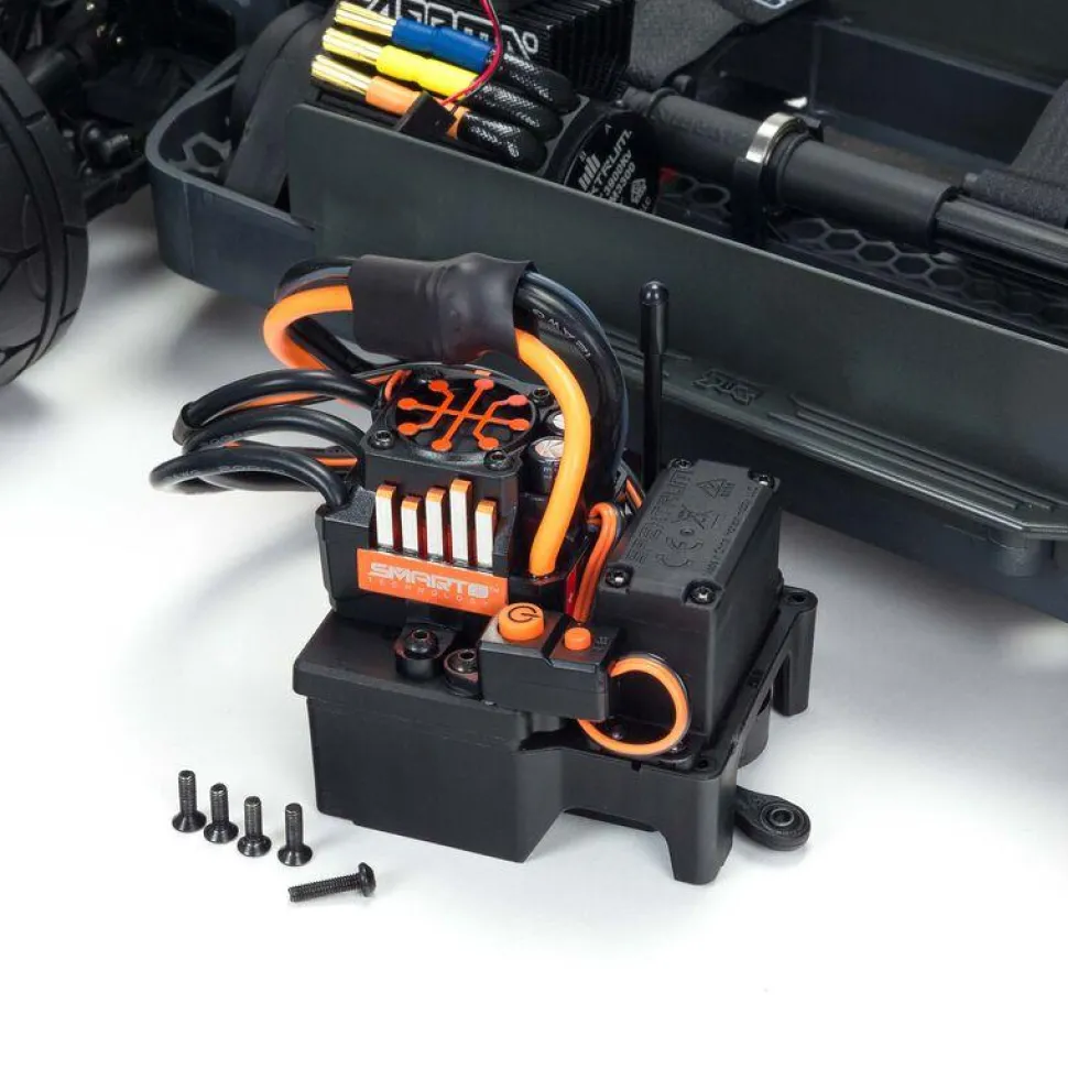 L’INFRACTION® 4X4 3S BLX bénéficie également des avantages de contrôle exclusifs de l’électronique Spektrum incluse et installée. Le système radio DX3 DSMR® 2,4GHz, le récepteur SR6200A et l’ESC Firma™ 100A fonctionnent ensemble pour offrir les avantages de l’AVC® (Active Vehicle Control™) et de la technologie Smart dès la sortie de la boîte.