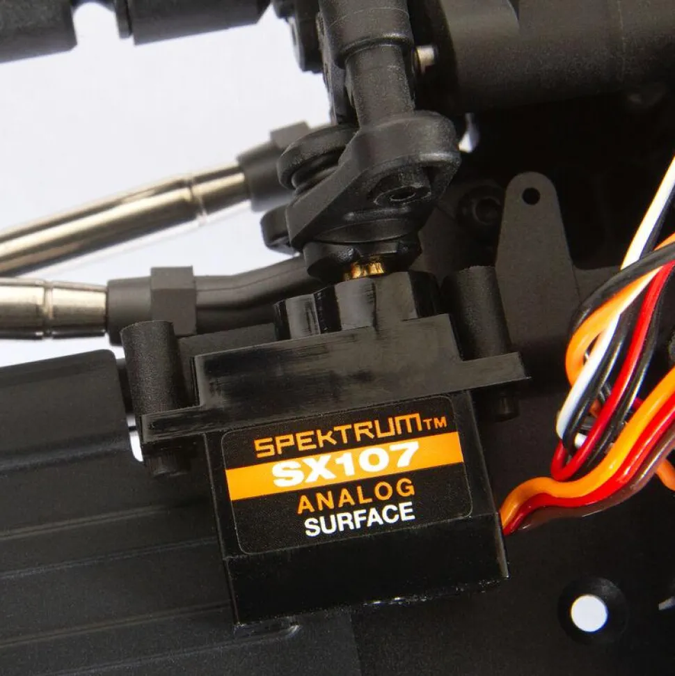 La radiocommande Spektrum ™ DX3 ™ incluse est dotée de la technologie DSMR® exclusive pour une portée, une réponse et une immunité aux interférences supérieures. Elle est également entièrement compatible avec le potentiel de télémétrie intelligente qu’offre le Spektrum ™ Firma ™ Smart 40A ESC / récepteur installé dans le véhicule.