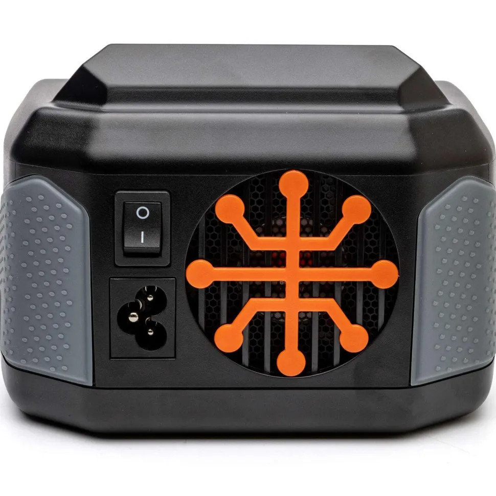 Le boîtier élégant du chargeur s’adapte parfaitement à ton établi et à ta boîte de démarrage. Le cordon d’alimentation est détachable pour faciliter le transport. Des poignées en caoutchouc t’aident à tenir le chargeur en toute sécurité lorsque tu connectes et déconnectes les batteries. Les ports d’entrée et de sortie USB te permettent de mettre à jour le micrologiciel du chargeur et de charger des appareils secondaires. Parmi les autres caractéristiques, on trouve un interrupteur d’alimentation intégré et un ventilateur silencieux.