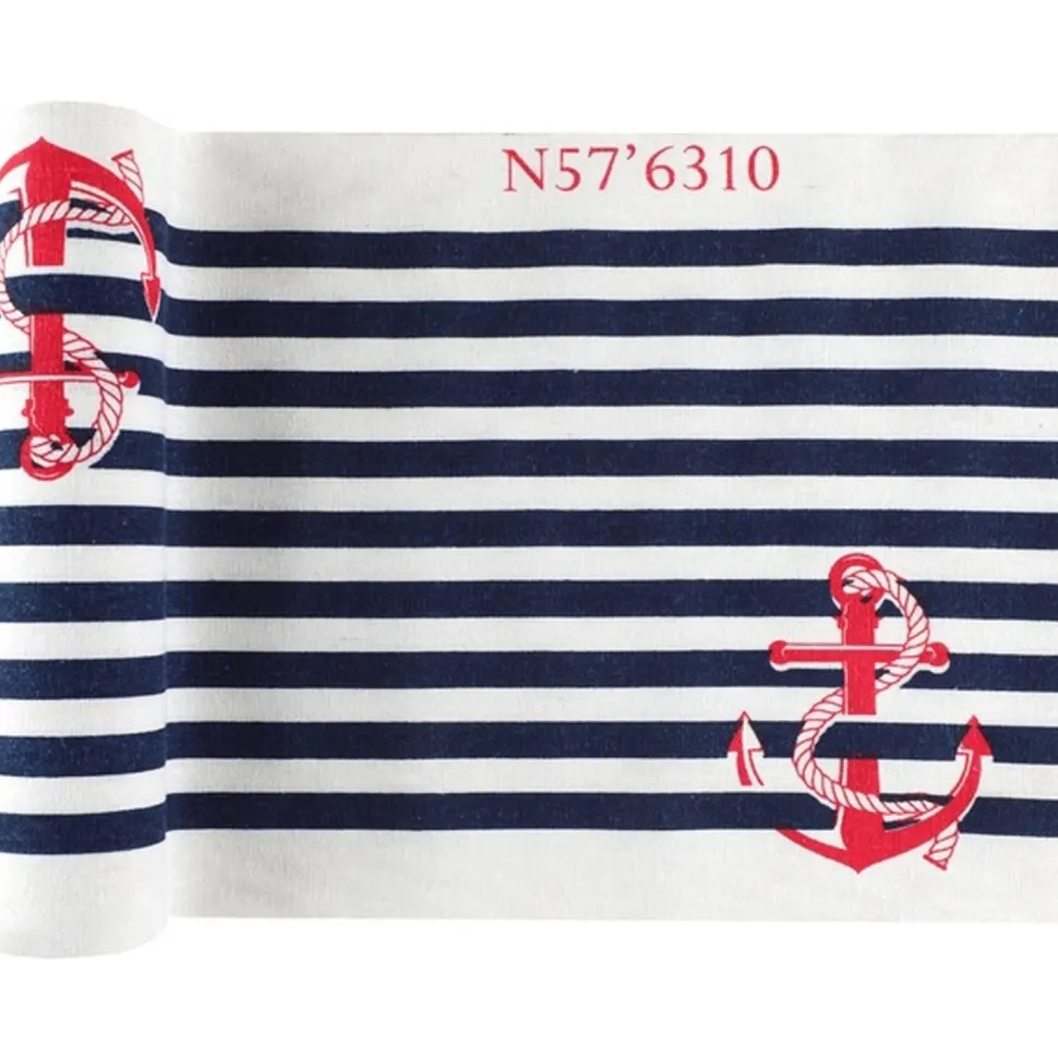 Caractéristiques détaillées : Chemin de table BORD DE MER, coton rayé et ancre 3m