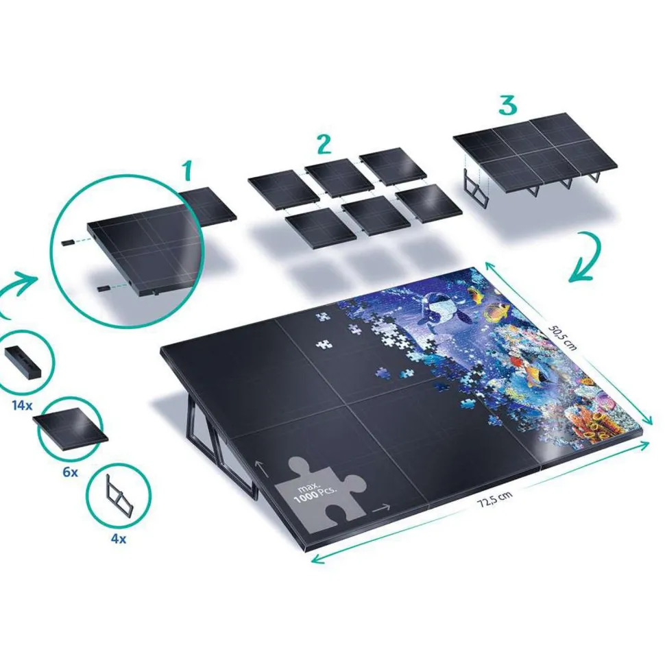 Prenez plaisir à faire du puzzle grâce à ce pupitre incliné antidérapant et ultra léger. Son inclinaison vous permet d’être totalement à l’aise pour monter votre puzzle et soulage votre nuque.Il peut accueillir des puzzles jusqu’au format 1000 pièces (maximum 70 x 50 cm) au format paysage.Contenu : 1 support à puzzle incliné en plastique recyclé (dimensions : 72,5 x 50,5 cm)