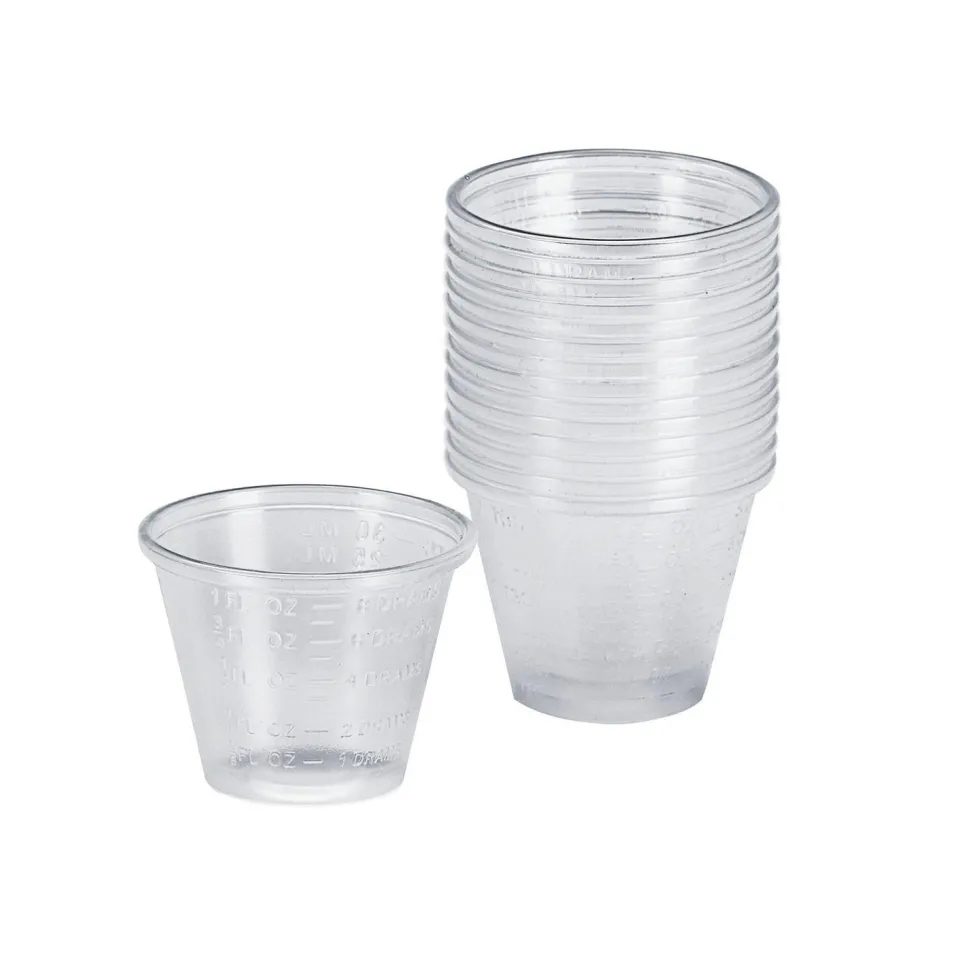 Lot de 15 Gobelets en plastique robuste pour mélanger de petites et grandes quantités de peinture. La graduation en ml et en fl. oz. facilite en outre le dosage.