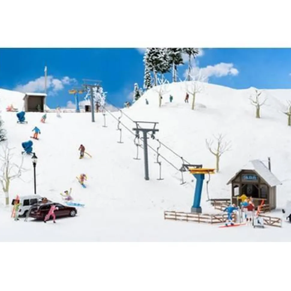 Ajoutez une touche de réalisme à vos maquettes avec ce décor de modélisme minutieusement détaillé de la marque Faller ! Idéal pour les passionnés, il apporte profondeur et authenticité à vos créations, tout en s’intégrant parfaitement à tous types de dioramas ou scènes miniatures.Les souvenirs d’enfance ou l’ambiance légère d’une journée de ski transformés de manière créative en un paysage hivernal sur le chemin de fer miniature H0 avec ses remontées mécaniques traditionnelles et ses nombreux accessoires assortis, tels que deux cabanes de remontées mécaniques, des canons à neige, des clôtures et des bancs.Ce kit de montage contient : 171 pièces détachées dans 8 couleurs, feuille pour fenêtre, 1 décoet 1 notice de montage.Infos complémentaires :Dimensions : 60 x 41 x 62 mm, 44 x 32 x 47 mm, 42 x 30 x 53 mm (2 x), 38 x 13 x 90 mm (2 x), 450 x 11 mmBesoin Éclairage/Électrique 1 x F180671