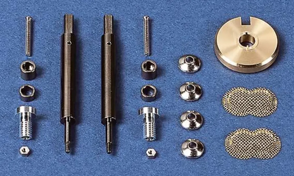 Ce set comprend des éléments en métal pour la fourche avant, l’embase d’amortisseur arrière et les grilles de trompettes d’admission.