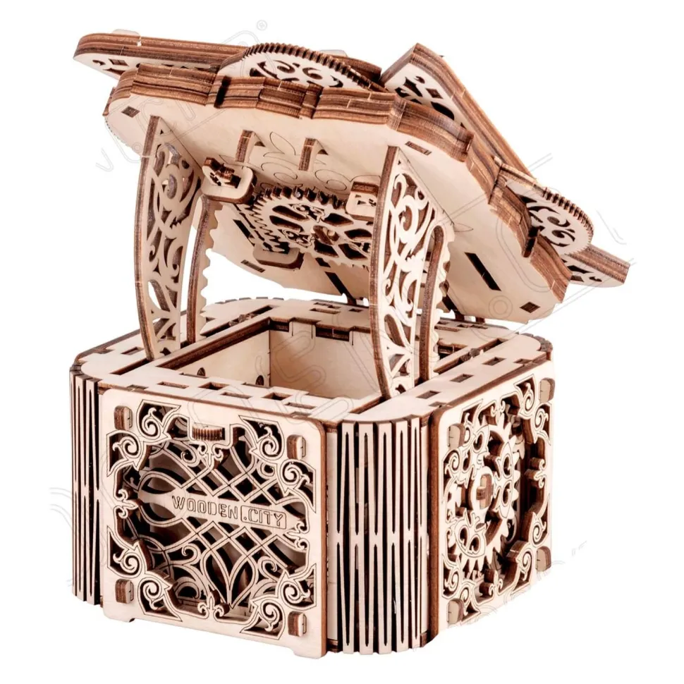 Mystery Box n’est pas un vieux jeu de puzzle 3D. Chaque détail de son assemblage a une grande importance. Après tout, la base de son mystère se trouve dans des calculs mathématiques exacts et des idées d’ingénierie. La magie et la précision y sont cachées. Inspiré par la légende du cinquième élément, nous avons créé une boîte pour vos secrets. Le couvercle s’ouvre avec une clé qui relie les triangles. Quatre éléments: l’esprit, le corps, la vue et l’ouïe. Et le cinquième est l’amour, qui ouvre toutes les serrures. Cette incarnation artistique de l’ingénierie cache intelligemment un puzzle. Comment ouvrir la Mystery Box n’est pas si simple à deviner. Le mystère de la boîte secrète ne se trouve que dans vos propres mains. La personne qui le reçoit devra réfléchir avant de pouvoir ouvrir son couvercle en bois gaufré de motifs magiques. Notre puzzle 3D Mystery Box de WOODEN.CITY est conçu pour être une pièce de conversation unique dans la maison. C’est un cadeau insolite pour ceux qui aiment la beauté et les surprises. Il est conçu pour gagner le coeur de quelqu’un!
