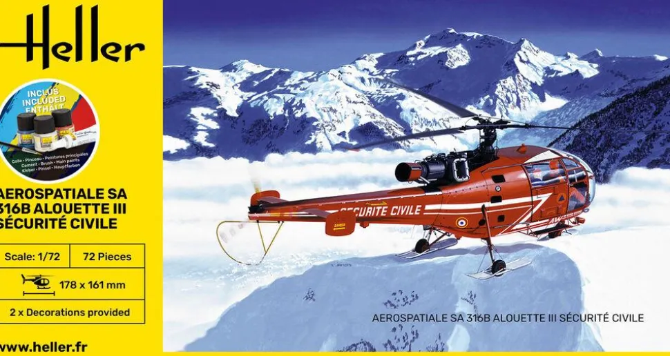 Description du produit : Maquette hélicoptère : Kit complet : ALOUETTE III Sécurité Civil