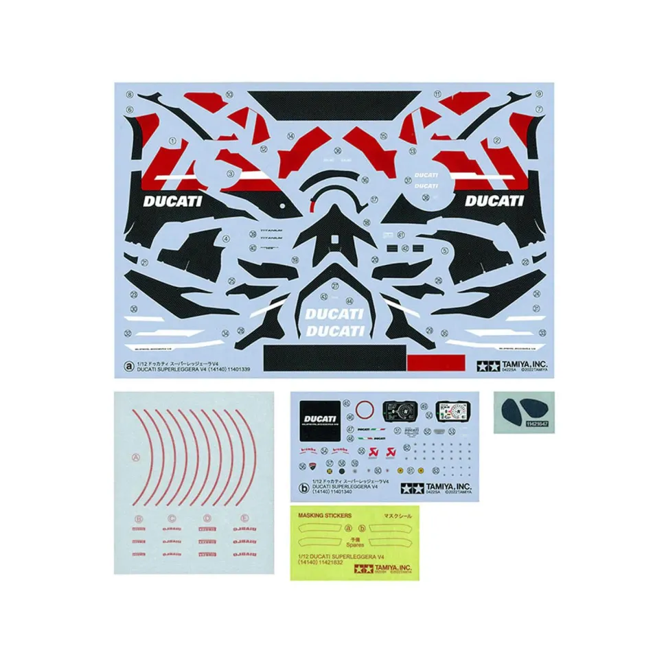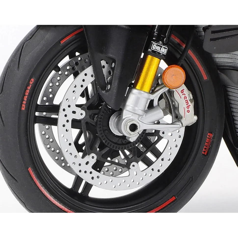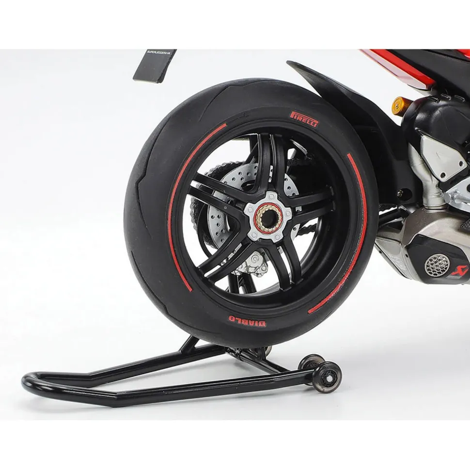 Maquette de la moto Ducati Superleggera V4, de la marque Tamiya.