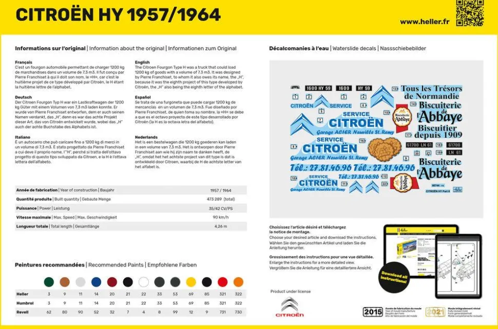 Description du produit : Maquette véhicule : Citroën HY 1957/1964