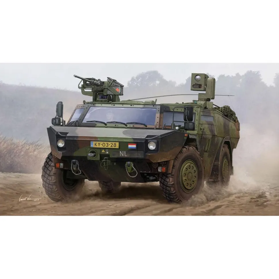 Maquette véhicule militaire de marque Trumpeter : Véhicule blindé Allemand Fennek LGS – Version néerlandaise Nombre de pièces : 400 pièces.Échelle : 1/35Dimensions de la maquette : 16 x 7,3 cm.