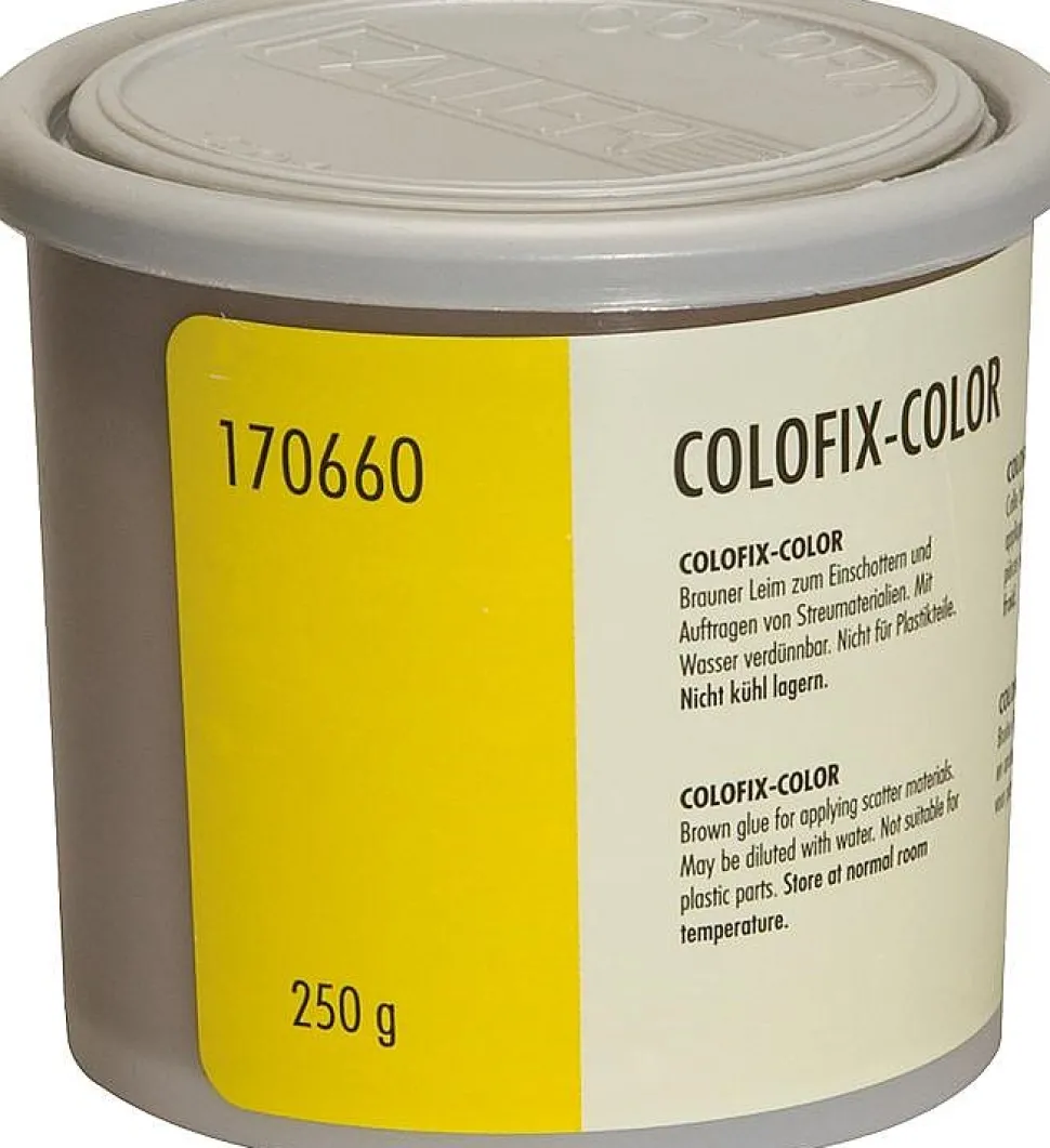 Matériel de modélisme – Colle : Colofix Color 250 g Colle brune pour fixer les cailloutis et appliquer du flocage.Convient pour les échelles H0 (1/87), TT (1/120), N (1/160) et Z (1/220).