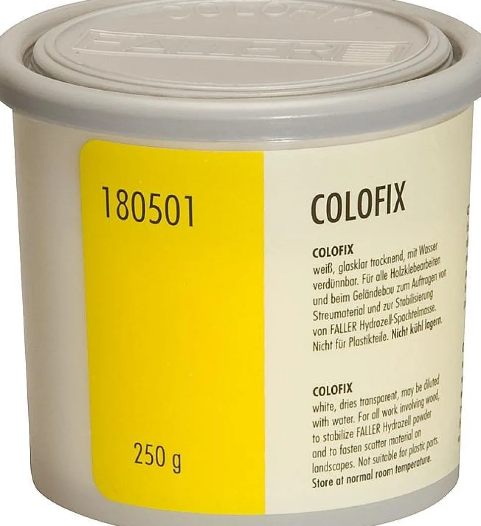 Matériel de modélisme – Colle : Colofix flocage 250g Colle blanche. Limpide après séchage, convient pour fixer le flocage.Convient pour les échelles HO (1/87), TT (1/120), N (1/160) et Z (1/220).