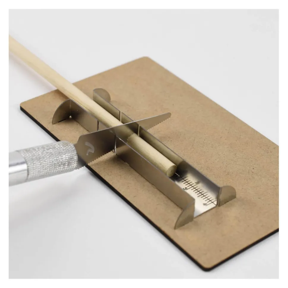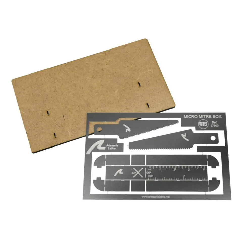 Contient quatre outils de modélisme indispensables: la onglet, la scie à dents fines -pour les plastiques-, la scie à grosse denture -parfaite pour le bois- et la base DM, qui est idéale pour protéger la zone où les coupes sont faites avec le Micro Boîte à Onglets avec Scies, également connue sous le nom de Micro Mitre.
