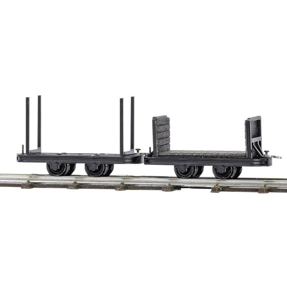 Ces wagons sont équipés d’attelages à crochets et sont donc compatibles avec les locomotives et les wagons de l’assortiment des chemins de fer miniers Busch.