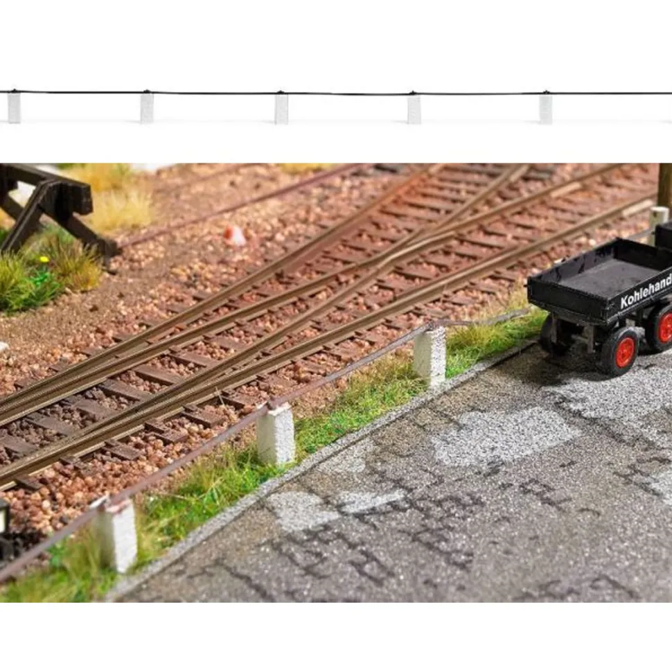 Dix bornes en pierre avec rambardes.Usage universel. Kit de construction longueur totale : 345 mmÉchelle : 1:87Destiné aux personnes de plus de 14 ans