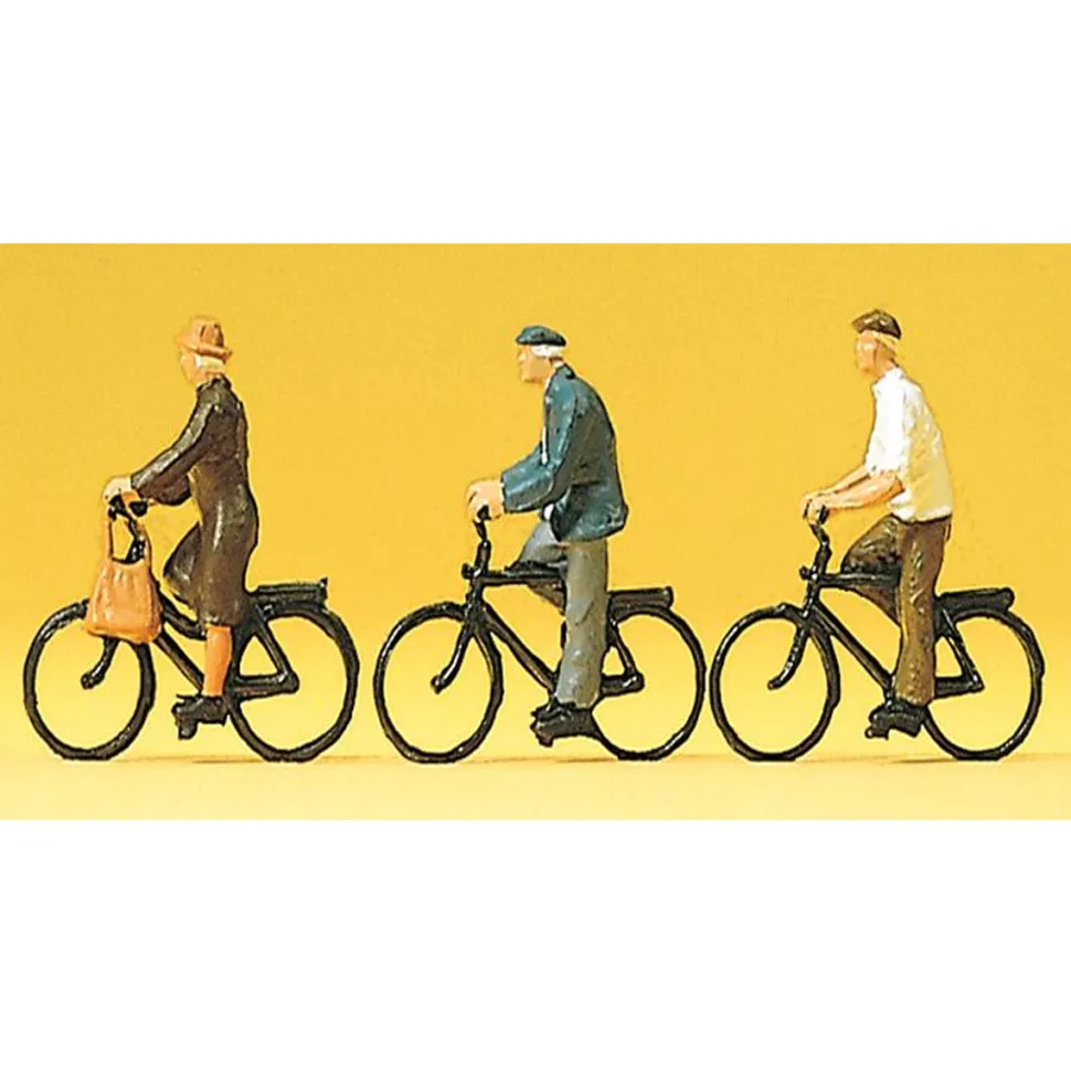 Retrouvez ce coffret de 3 figurines : Cyclistes.Pour donner à un circuit un aspect vivant, il ne faut pas oublier un détail essentiel : les personnages et leurs accessoires. Avec les différents coffrets de figurines Preiser, vous pouvez mettre en scène des situations comme dans la vie réelle, authentiques jusque dans les derniers détails et pleines de réalismes.Le cyclisme recouvre plusieurs notions : il est d’abord une activité quotidienne pour beaucoup, un loisir pour d’autres (cyclotourisme), et un sport proposant des courses à bicyclette selon plusieurs disciplines.Echelle HO = 1/87.