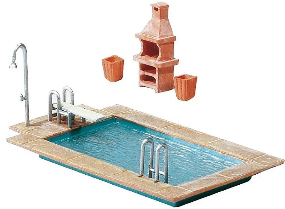Caractéristiques détaillées : Modélisme HO : Piscine et abri de jardin