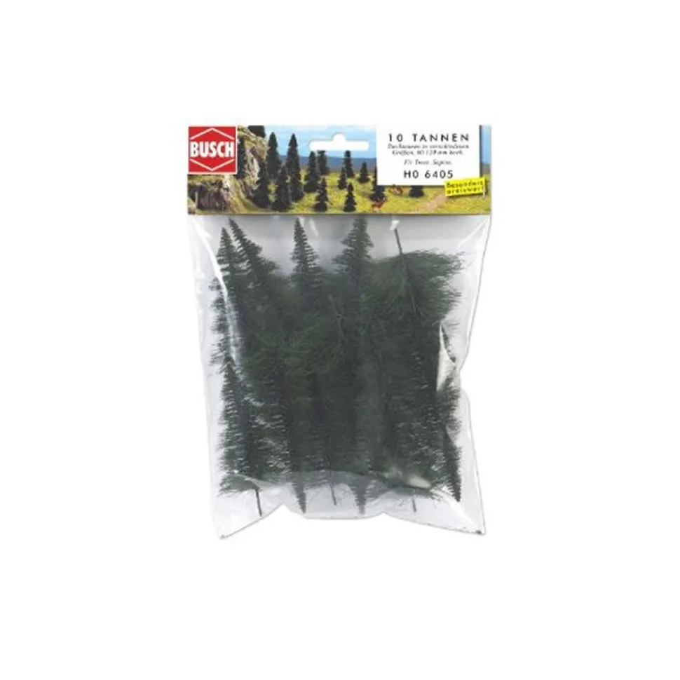 Busch 6405 vous propose cet assortiment de sapins à planter pour l’aménagement de votre diorama.Un arbre seul n’a jamais constitué une forêt, c’est pourquoi vous trouverez dans ce sachet une collection de 10 arbres.Hauteur des arbres : de 60 à 120 mmConvient pour échelles HO (1/87), TT (1/120) et N (1/160).