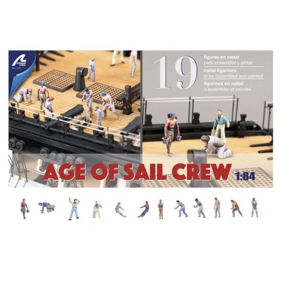 Ensemble de 19 figurines métalliquesAge of Sail Crew à assembler et à peindre – à l’échelle 1/84 – pour les maquettes en bois des bateaux. Il contient principalement un équipage supplémentaire de Marins des années entre 1700-1815 et est destiné au modèle de navire de ligne HMS Victory, ainsi qu’aux répliques miniatures du Cutty Sark, du San Juan de Nepomuceno, du Santa Ana et du Santísima Trinidad, entre autres.