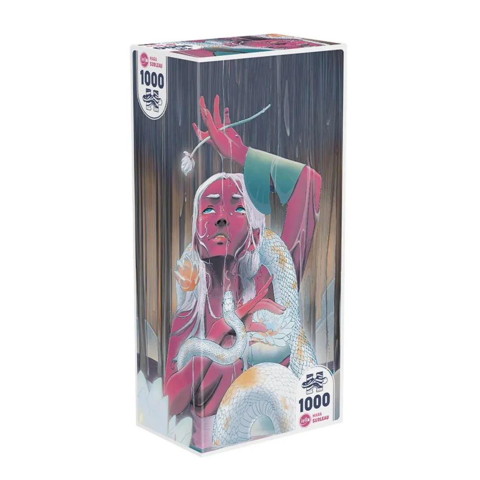 Des tons doux, des lignes délicates, mais une situation qui pourrait s’annoncer dangereuse. Prenez le risque d’apprivoiser cette créature enchanteresse et découvrez l’épreuve qui s’offre à vous. Son corps semi immergé, les fleurs qui l’entourent, son visage et ses yeux perdus dans la contemplation des serpents sont autant d’éléments qui vous permettront de vous immerger à votre tour dans ce puzzle.