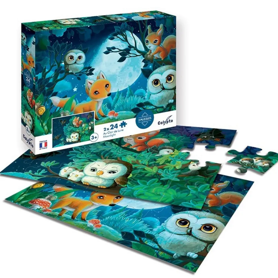 Coffret de 2 puzzles de 24 pièces : Au Clair de Lune de la gamme Calypto, de la marque Sentosphère.