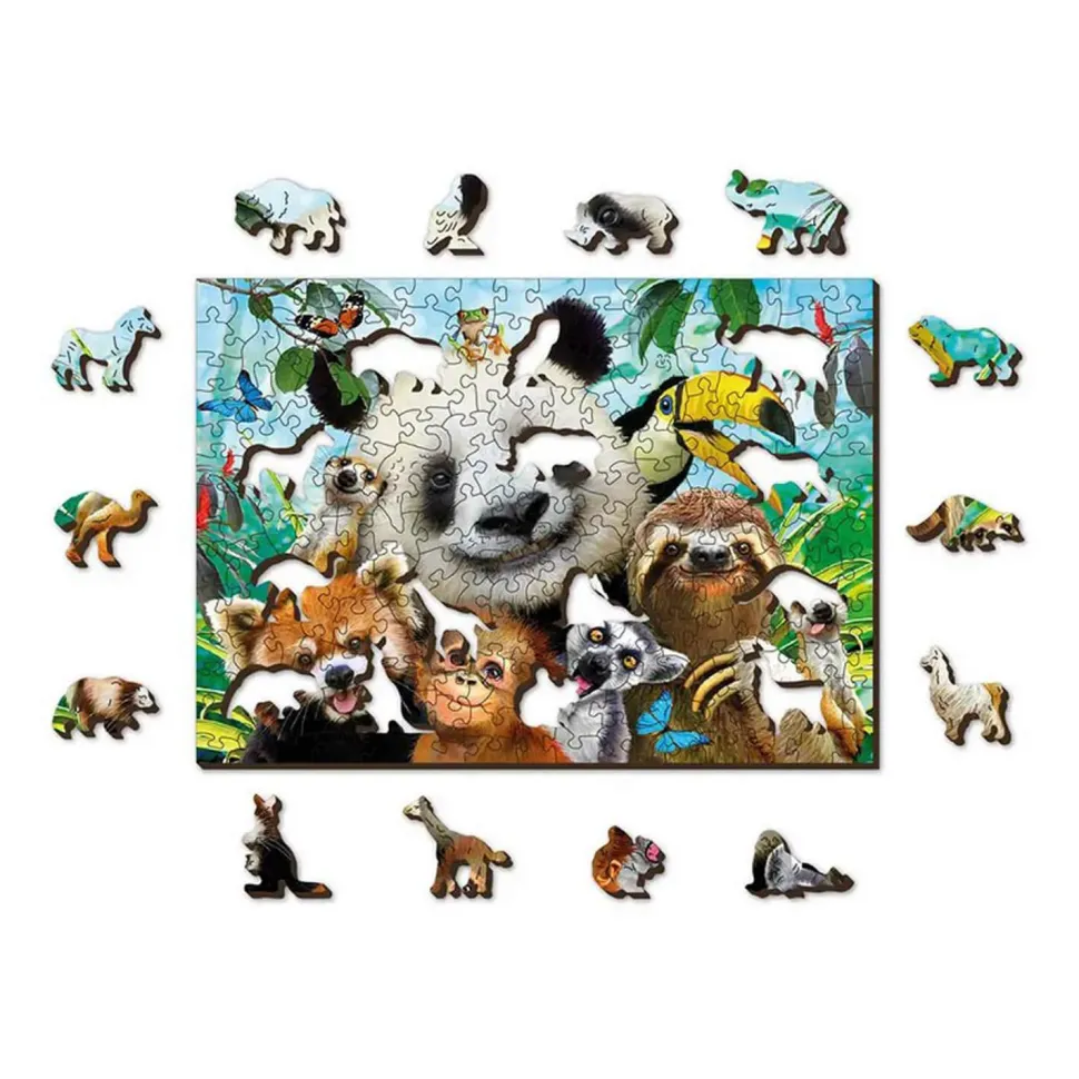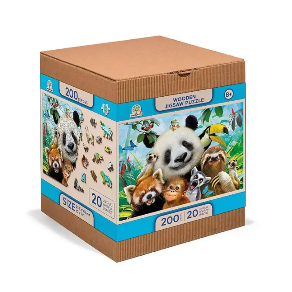 Description du produit : Puzzle 200 pièces/20 formes en bois : Bienvenue dans la jungle