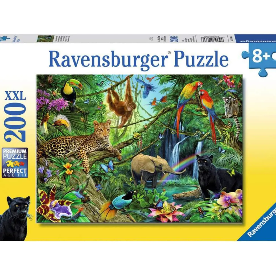 Entendez-vous le chant des oiseaux et le bruit de l’eau ? Observez cette illustration et laissez-vous emporté par l’évasion et l’exotisme ! Ce puzzle vous plongera dans la jungle au coeur de la végétation luxuriante où se côtoie plusieurs animaux sauvages : un éléphant, un léopard, des perroquets, des toucans, un singe …Ce puzzle Ravensburger a pour thème les animaux de la jungle. C’est un puzzle composé de 200 pièces XXL en carton, il est facile à réaliser et adapté aux enfants de 6 à 10 ans. En mode paysage, il mesure 49 cm de longueur pour 36 cm de largeur.