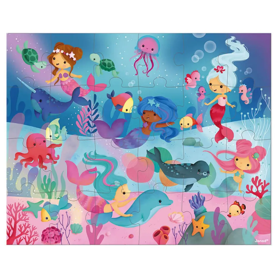 Puzzle de 24 pièces de la marque Janod sur le thème des sirènes.