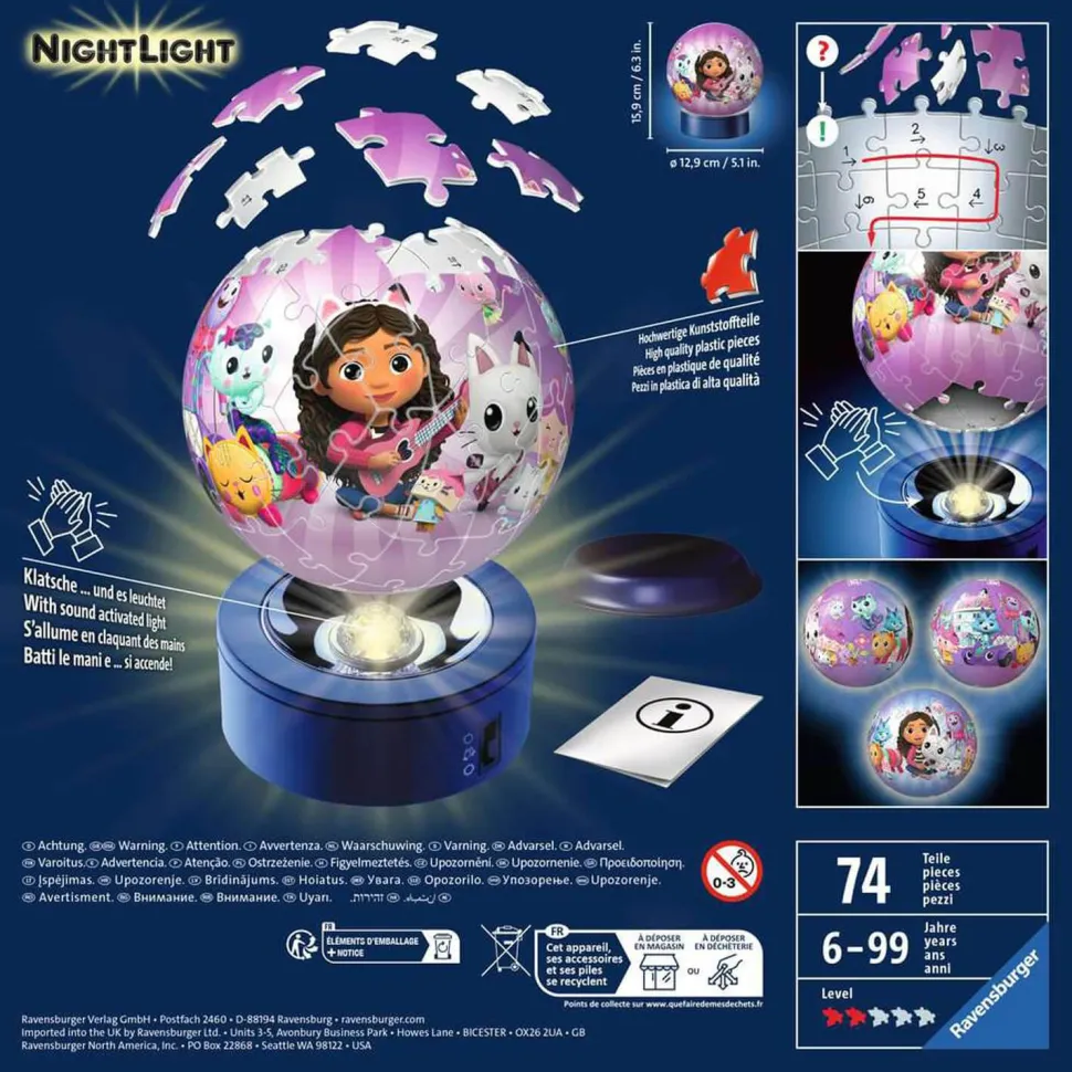 Description du produit : Puzzle 3D Ball 72 pièces illuminé : Gabby et la maison magique, Gabby’s Dollhouse