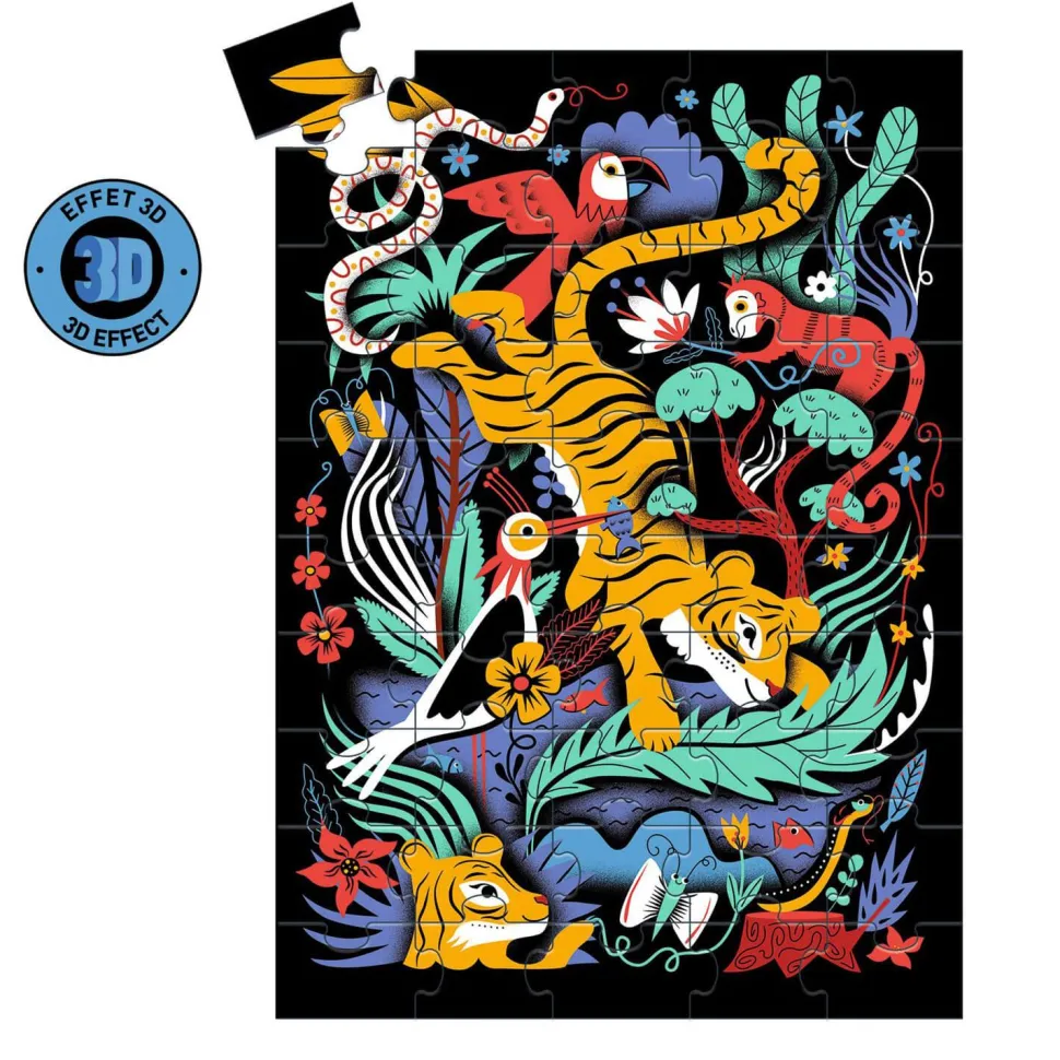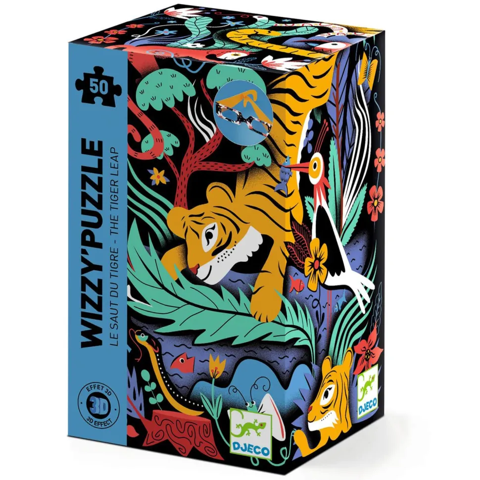 Caractéristiques détaillées : Puzzle 50 pièces effet 3D : Le saut du tigre