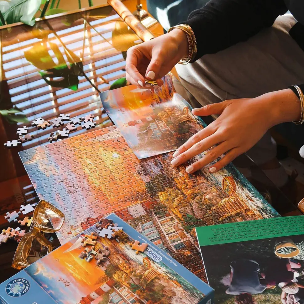 Puzzles de 500 pièces de la marque Gibsons. Dimensions du puzzle assemblé : 48 x 34 cm.