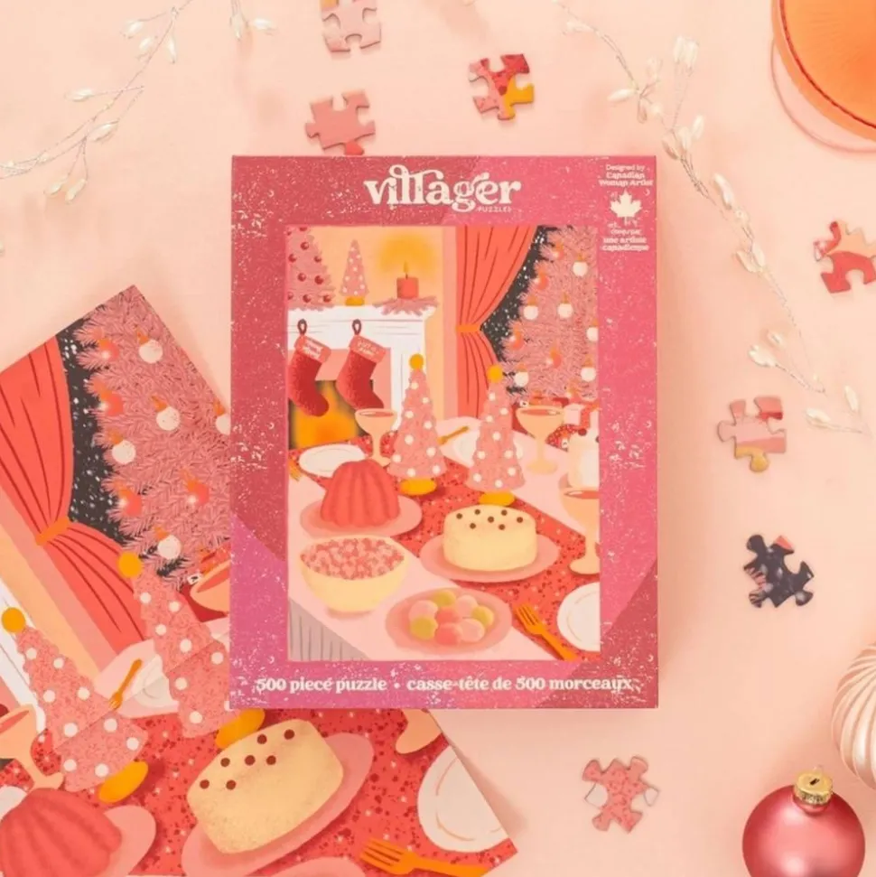 Découvrez le puzzle 500 pièces, Noël rose de la marque Villager puzzle !