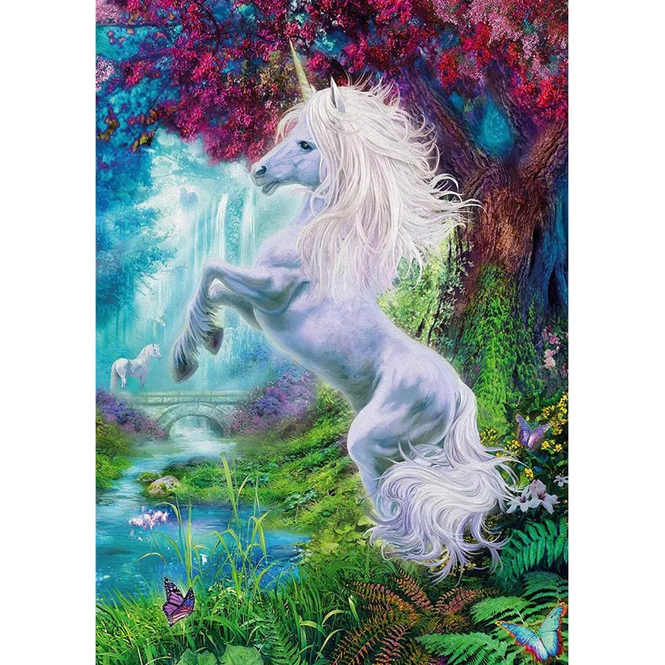 Caractéristiques détaillées : Puzzle 60 pièces : Licorne dans un jardin enchanté