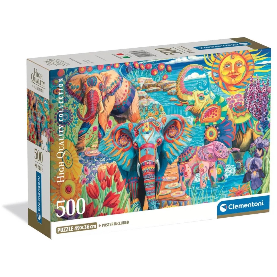 Caractéristiques détaillées : Puzzle Compact 500 pièces : Le Carnaval des Éléphants