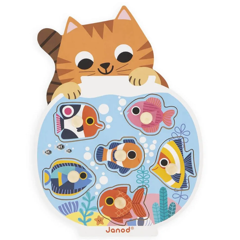 Puzzle Encastrement 6 pièces : aquarium, de la marque Janod.