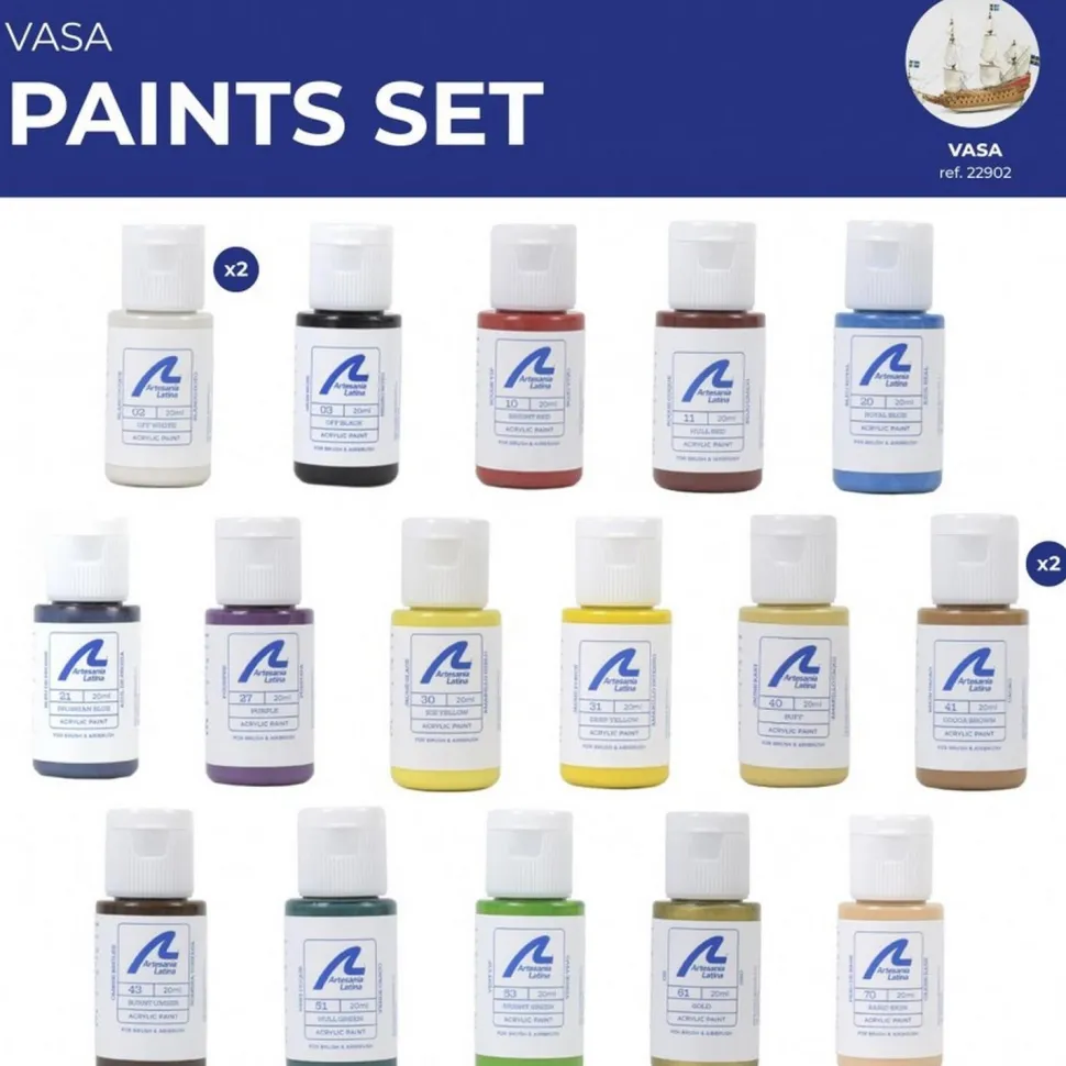 Set de 18 peintures acryliques de la marque Artesanía pour les modèles de maquette Navire de guerre Suédois Vasa !