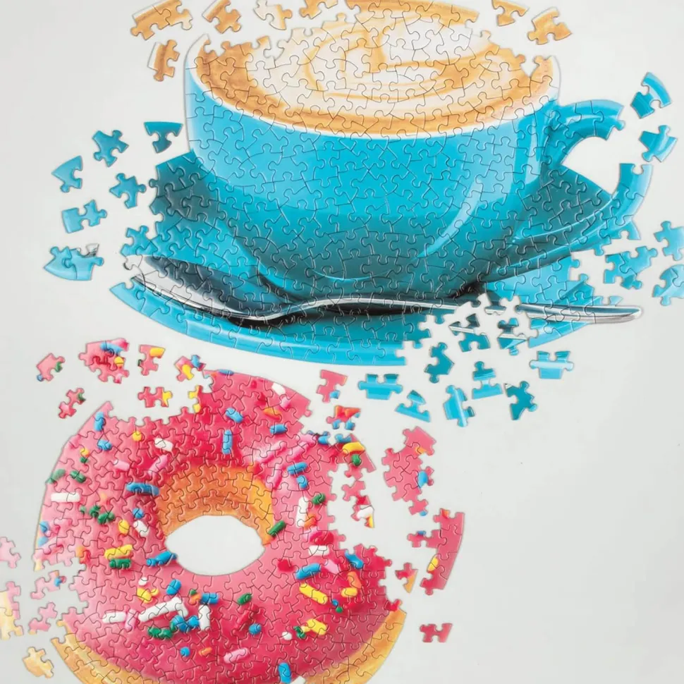 2 Puzzles forme de marque Galison.Dimensions du puzzle Donut : 29,2 x 27,9 cm environ.Dimensions du puzzle café : 42,5 x 27,9 cm environ.