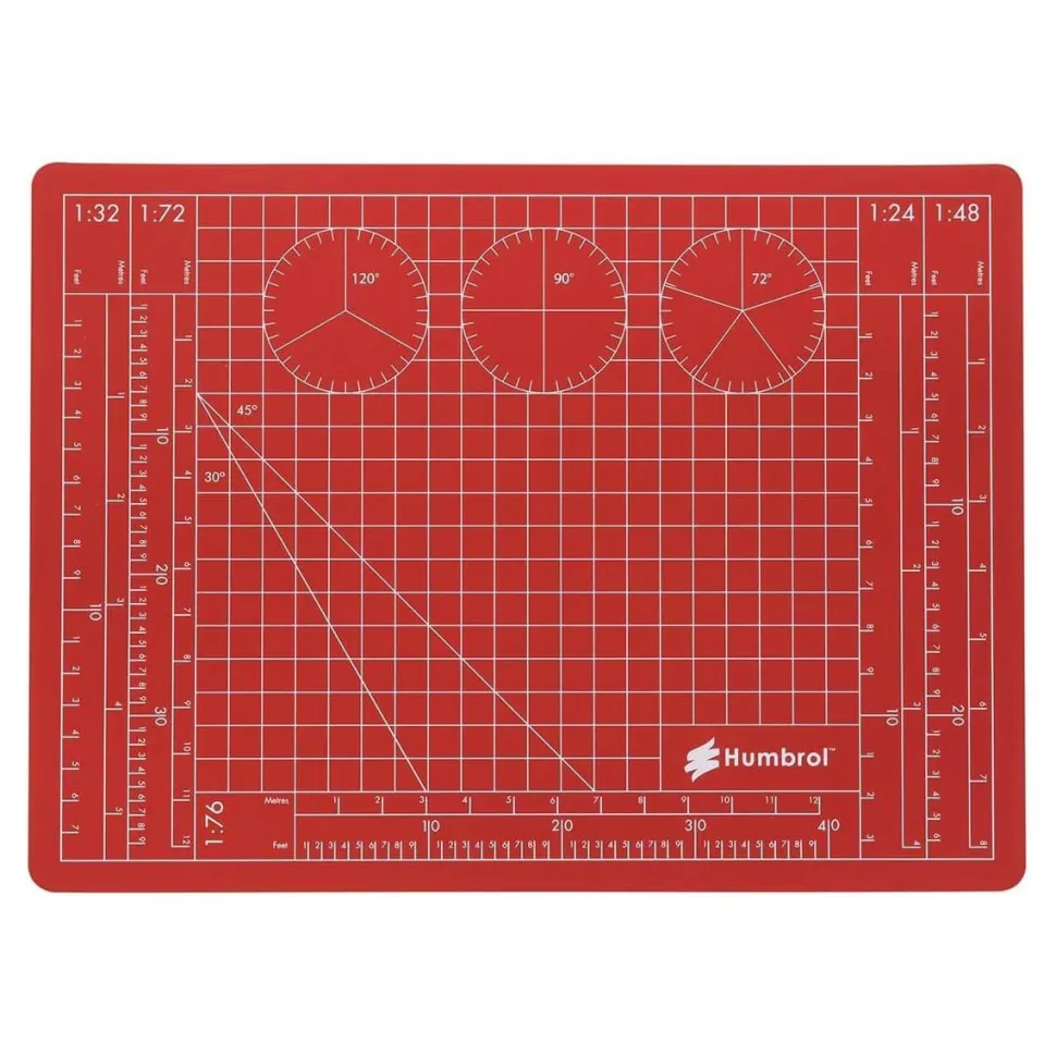 Un tapis de découpe pour modélistes aguerris utilisable recto-verso. Il dispose de marques de découpe pour les échelles 1:24, 1:32, 1:48, 1:72 et 1:76.Il possède également une grille carrée d’un centimètre ainsi que des marques d’angle à 30°, 45°, 72°, 90° et 120° (sur un seul côté).Dimensions du produit : 30.5 x 30 x 0.5 cm.Note : retrouvez le tapis de découpe A3 sous la référence Humbrol-AG9157.