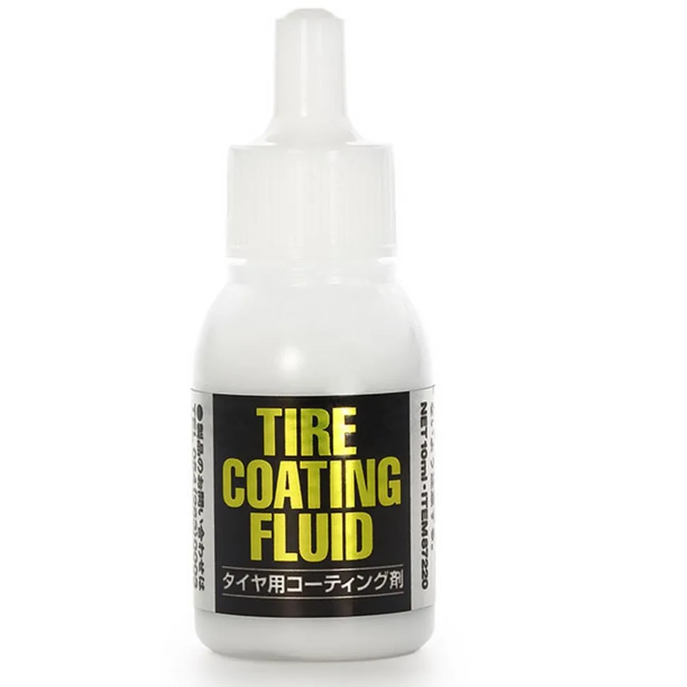 Pour vos maquettes, Tamiya présente ce flacon de 10 ml de solution pour pneus en caoutchouc.