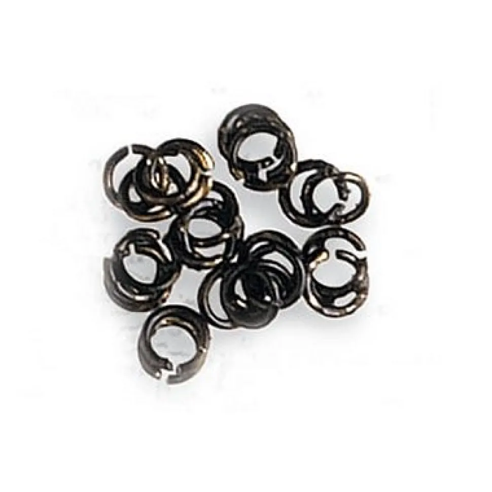 Maquette en bois – Anneaux en laiton poli : Diamètre 3 mm. Pièces d’aspect noirci suite un bain spécial pour la protection du laitonLot de 50.