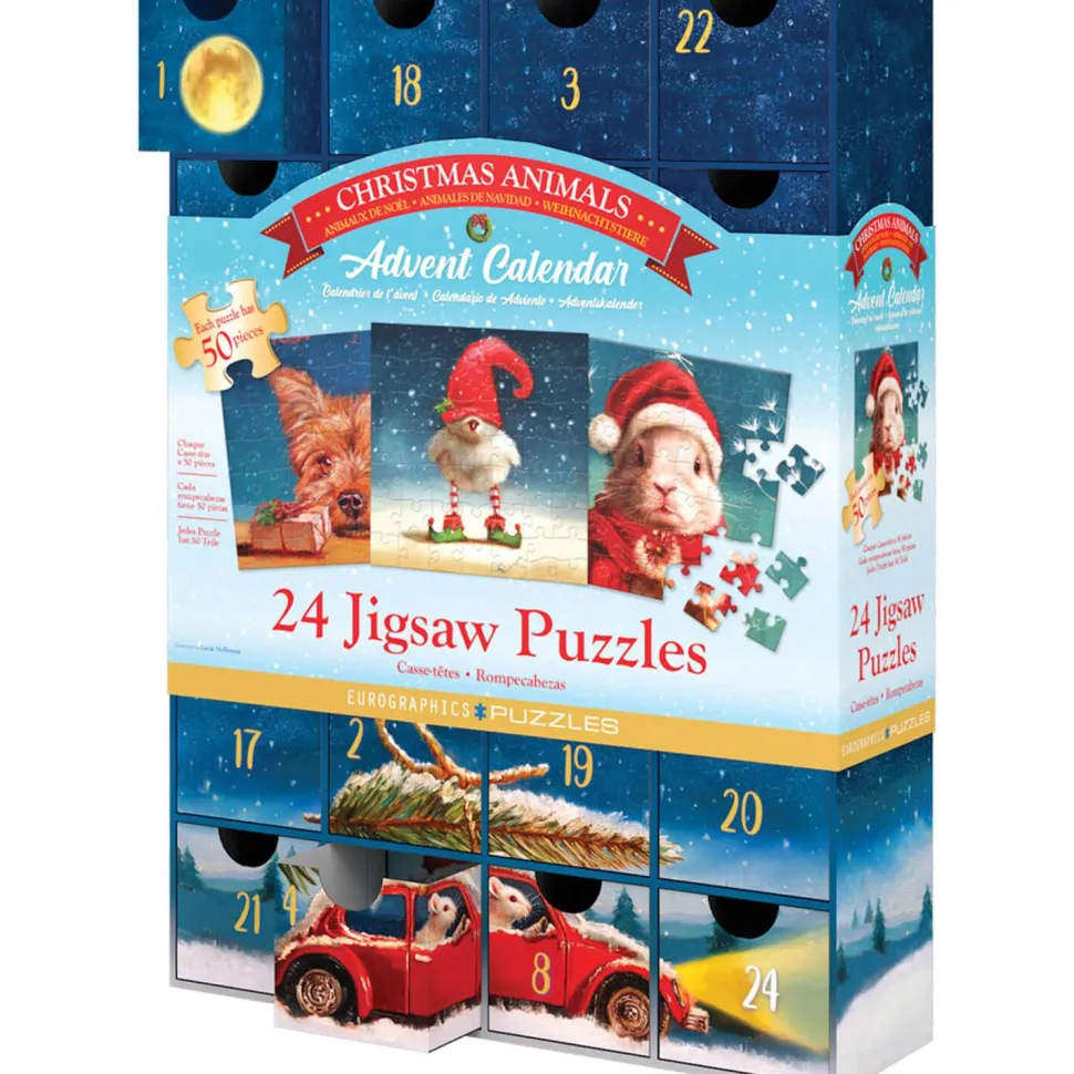 Description du produit : Calendrier de l’Avent : 24 Puzzles : Animaux de Noël