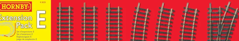 Ce pack est composé des voies suivantes : 1 x R 8073 3 x R 605 1 x R 606 1 x R 636 1 x R 083.Les packs de voies Hornby sont particulièrement adaptés pour agrandir de manière simple les réseaux fournis dans les coffrets de départ Jouef, Lima, Rivarrossi et Electrotren.Ce pack est un complément idéal au pack A, B, C et D (réf JR8221, JR8222, JR8223 et JR8224) et peut ensuite être complété par le pack JR8226 vous permettant ainsi d’agrandir à votre convenance votre réseau.