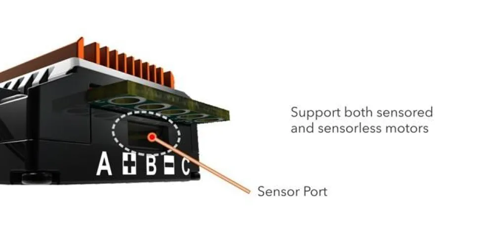 Il est conçu pour les voitures à l’échelle 1/10ème et 1/12ème avec l’utilisation de 2-3 cellules batterie LiPo ou 5-9 batterie NiMH.
