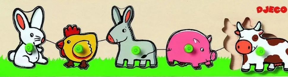 Repositionnez ces 5 animaux de la ferme au bon endroit et c’est gagné ! Dimensions : 29.8 x 7.8 x 1 cm.