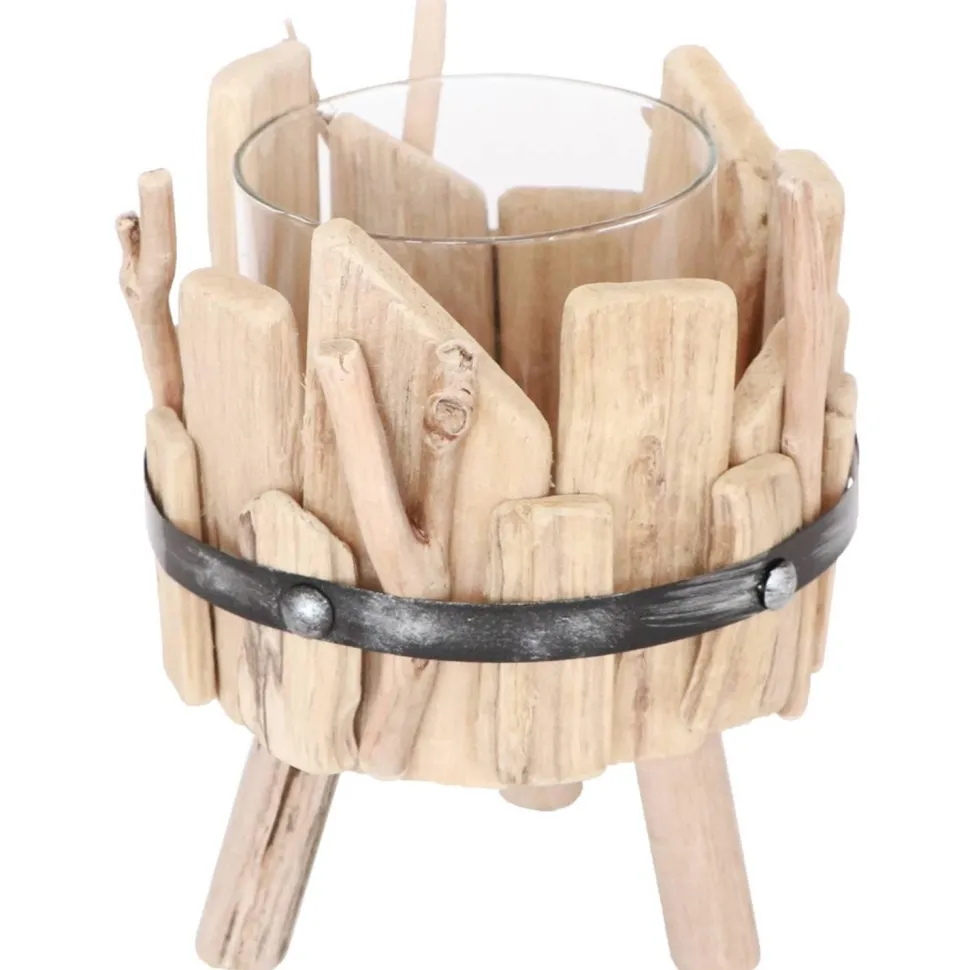 Description du produit : Grand Photophore bois/métal/verre sur pieds 18cm
