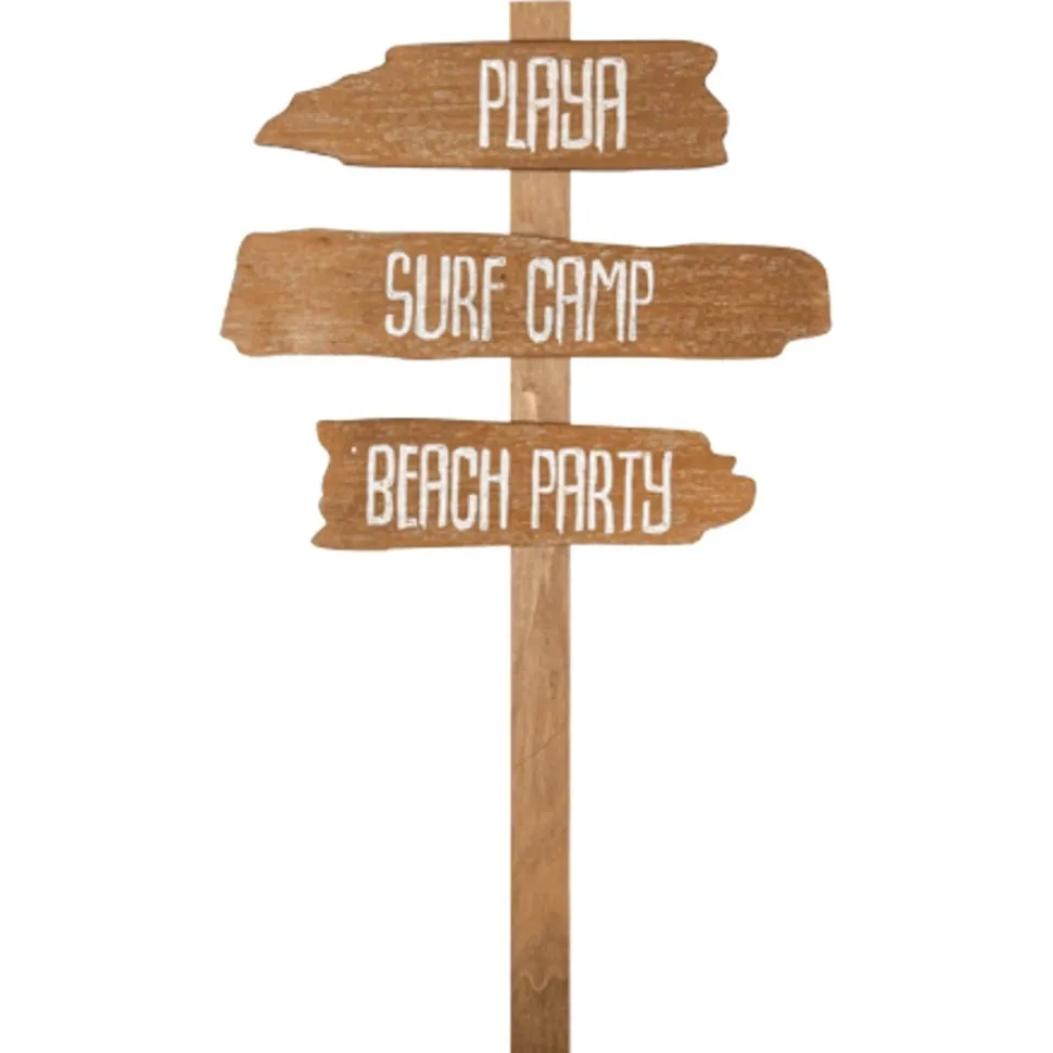 Panneau multidirectionnel décoratif en bois composé d’un mât et de 3 flèches : Playa, Surf Camp, Beach Party