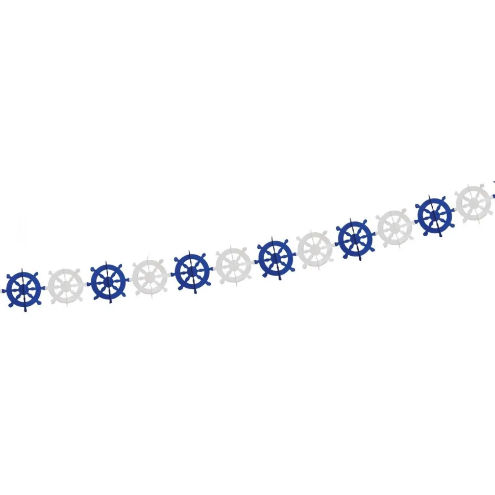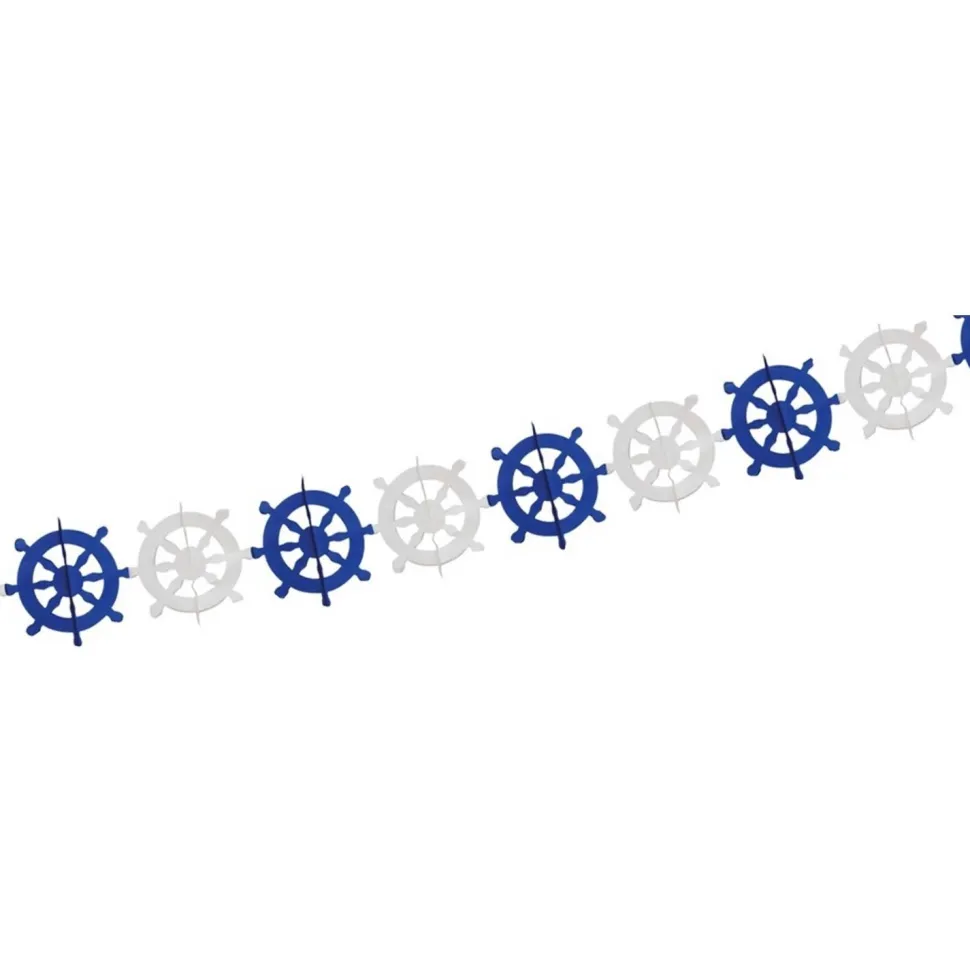 Guirlande GOUVERNAILS ignifugée 3m, en papier bleu et blanc, barres de navigation